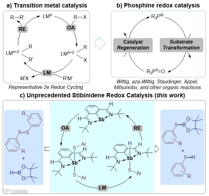 图1. 过渡金属、有机膦、锑宾变价催化循环示例。图片来源: