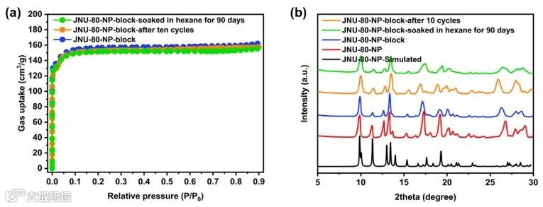图5. JNU-80-NP-block的稳定性表征