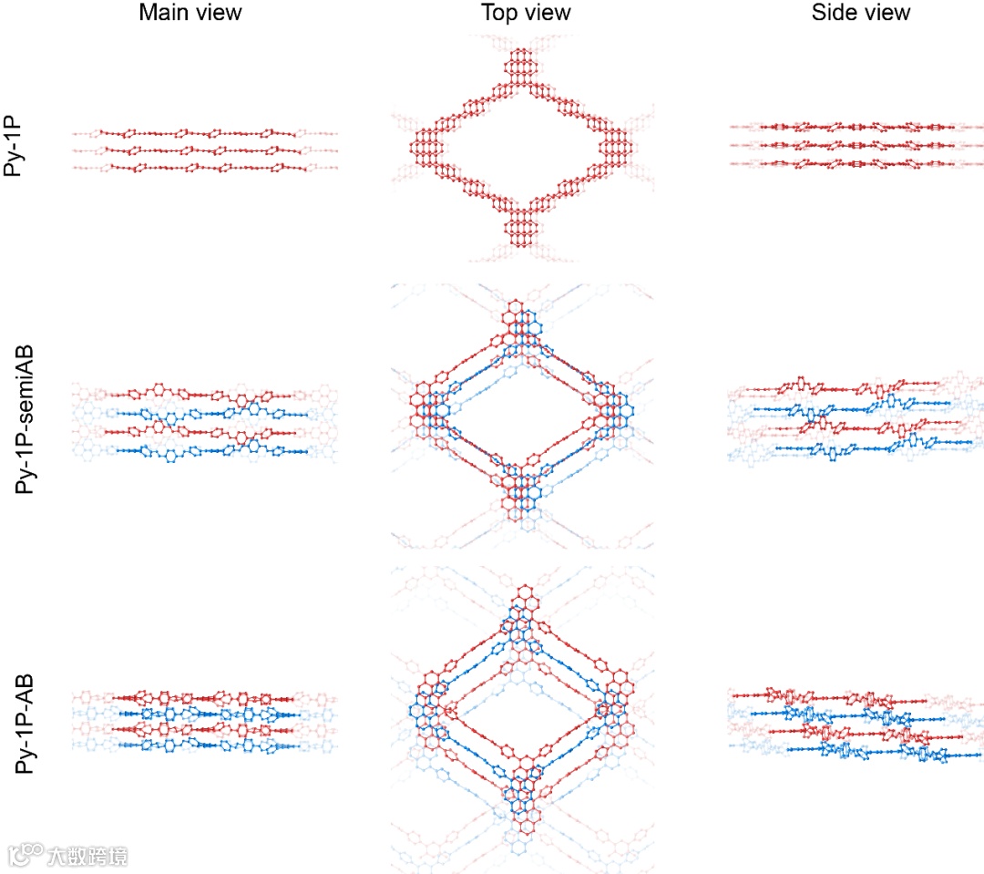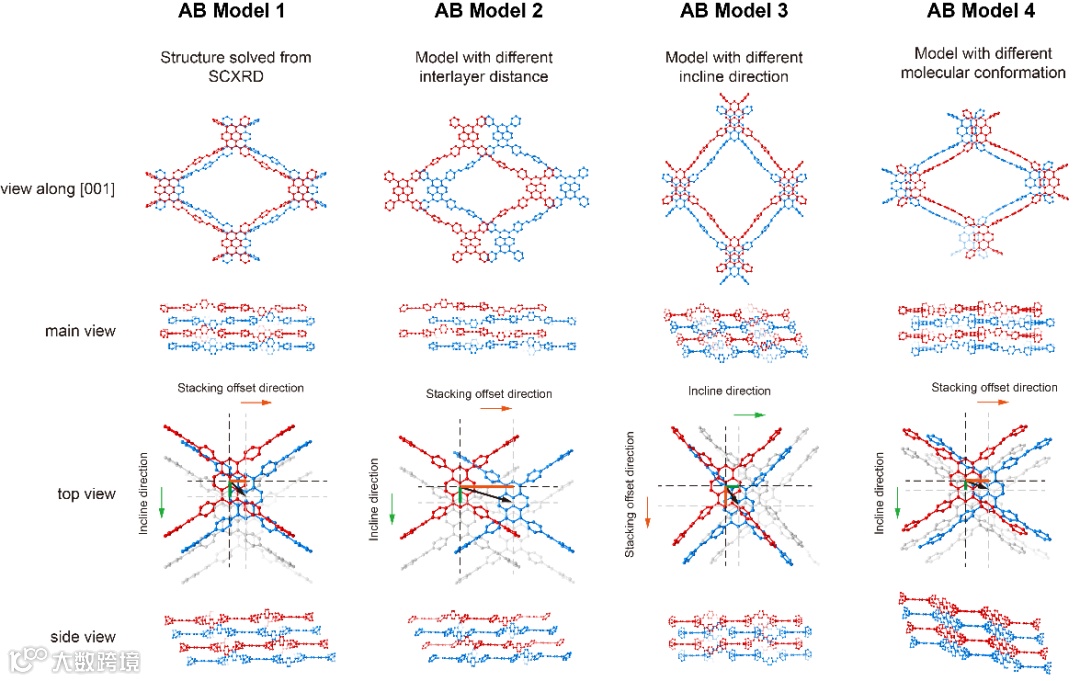 3.捕获了2D COF在失溶剂前、中、后分别的单晶结构,发现了2D COF在失溶剂过程中层间堆积方式、层间距和堆积倾斜方向的非线性的变化。