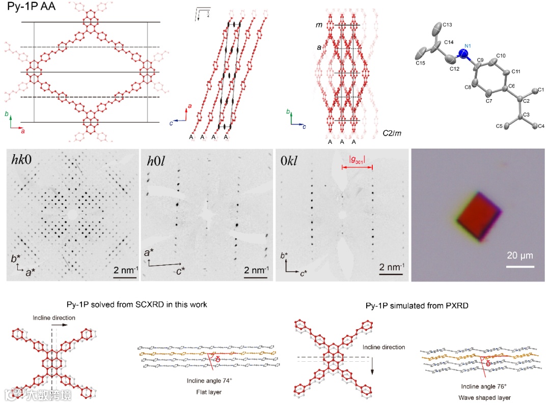 1.首次获得了数十微米级别的亚胺连接2D COF单晶,通过单晶X射线衍射以原子级分辨获得了其准确结构;