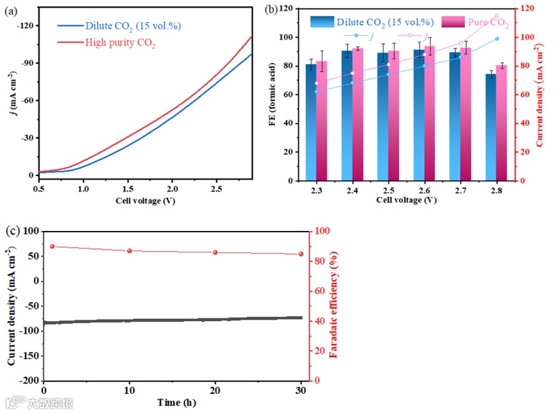 电还原成甲酸,电流密度高达80 mA c