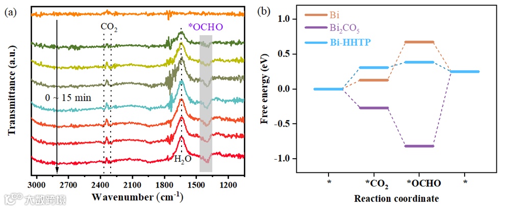 RR的原位ATR-FTIR光谱。(b) 分别计算Bi单质、