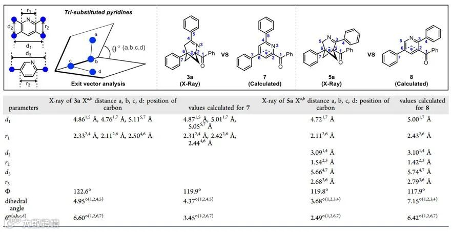 ) 的单晶结构与相应吡啶的理论计算结构进行比较。矢量分析表明:2-和3-氮杂双环[3.1.1]庚烯在空间结构上很好地模拟吡啶环,是三取代吡啶的有潜力的三维生物电子等排体(图7)。