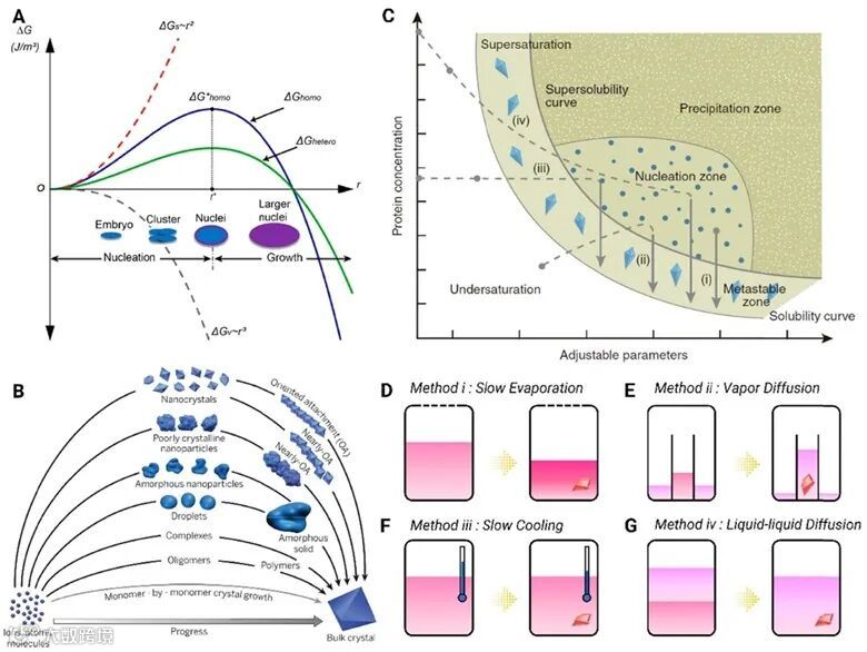 图1. 溶液中的有机小分子的成核与生长