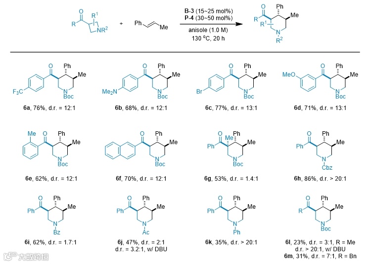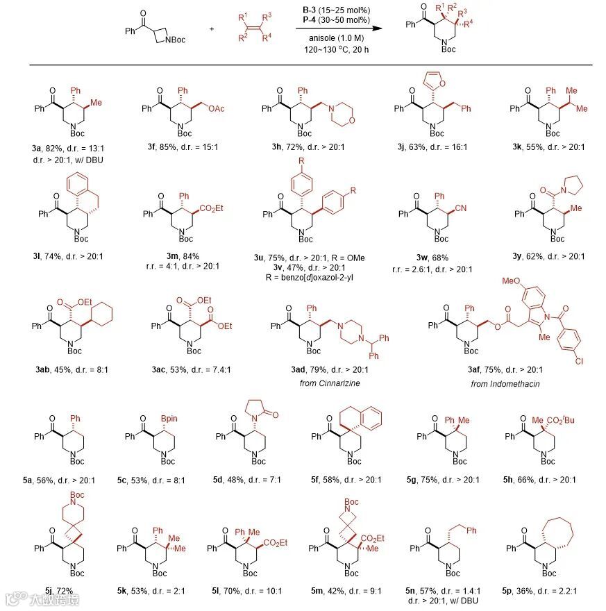 利用硼自由基催化氮杂环丁烷与多取代烯烃的(4+2)环加成反应来高效、模块化构建多取代哌啶