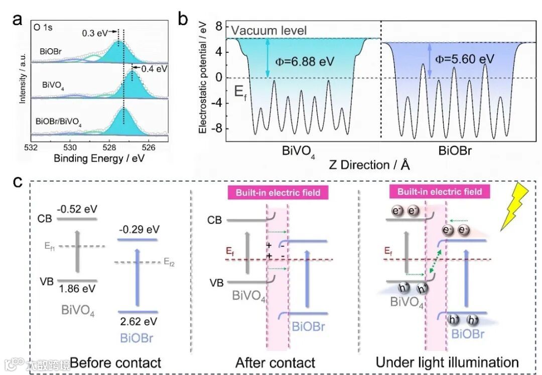 中的内建电场产生从BiOBr到BiV
