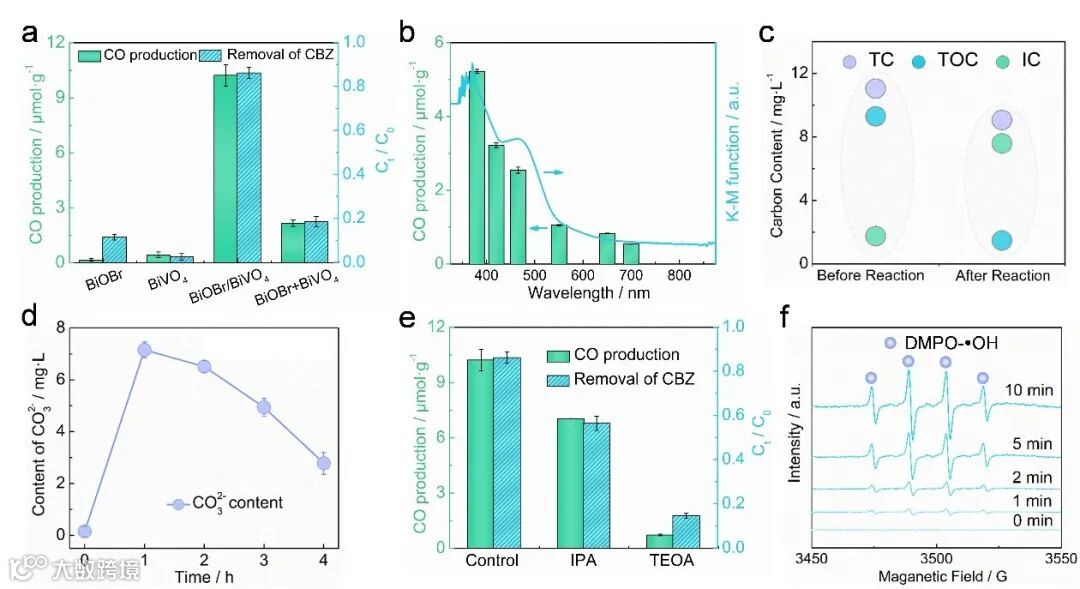 高选择性转化为CO的关键限速步骤。该系统实现了有机污染物降解中增值化学品的选择性转化,为实际废水的资源化提供了理论依据。