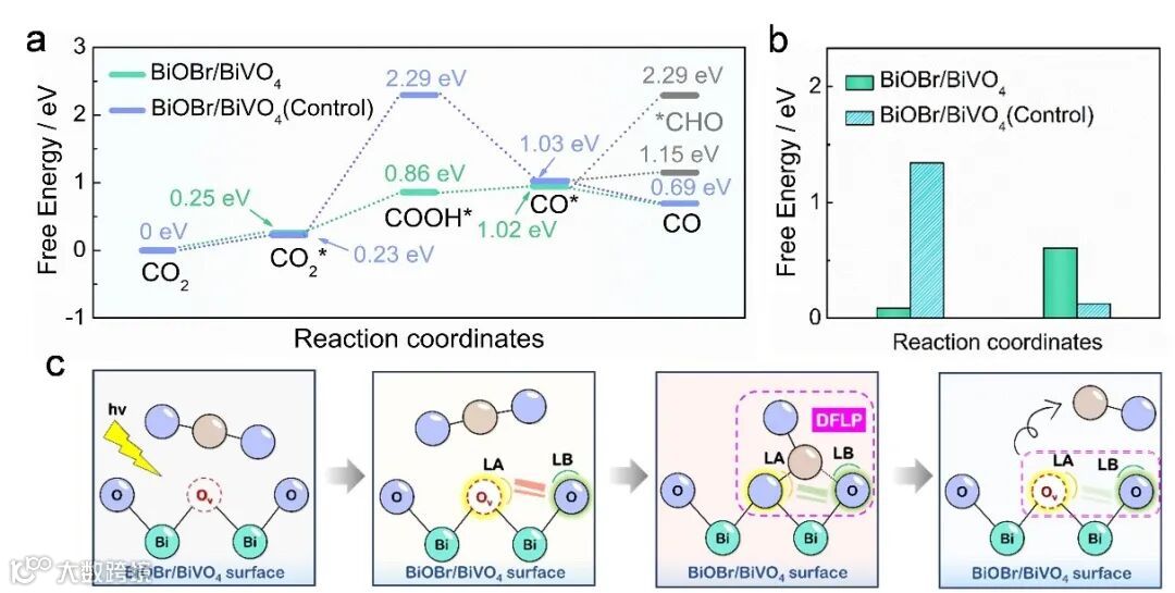 -CO转化过程的五个连续反应步骤的自由能计算,证明氧缺陷诱导了BiOBr/BiV