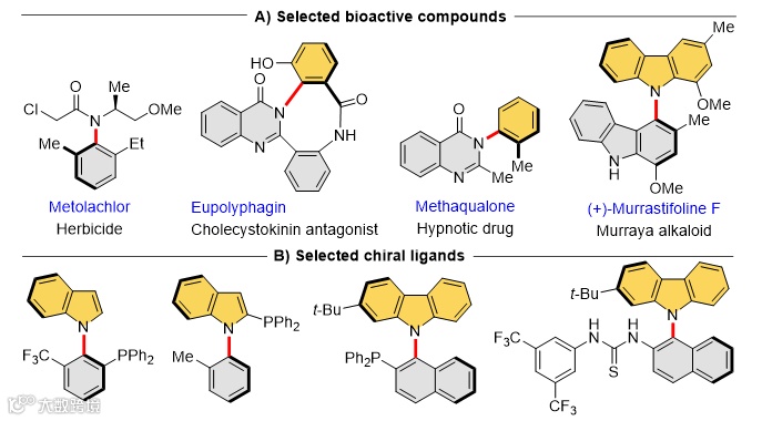 阻转异构体是公认最广泛的一类具有轴向手性的化合物,由围绕单键旋转受限的构象组成,这使得它们能够以稳定的形式分离。目前,在构建阻转异构框架方面特别是构筑