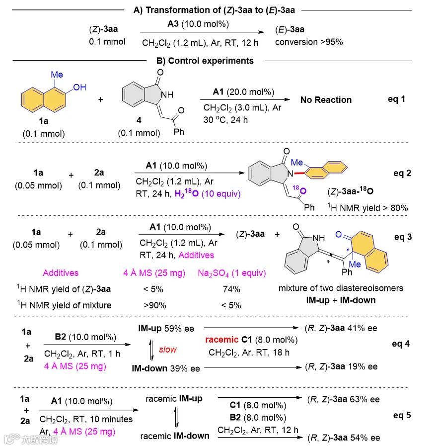 中(图5, eq 2)。重要的是,在添加4Å分子筛的情况下,形成了联烯的中间体---