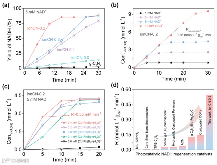 采用掺杂钾离子的氮化碳(ionCN-0.2)作为光催化剂再生NAD(P)H及其类似物