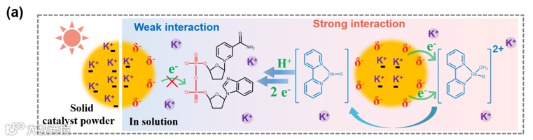辅助因子,特别是NAD(P)H及其类似物,对氧化还原酶的功能起着至关重要的作用,而氧化还原酶是合成具有重要商业价值的产品(包括手性中间体)的关键酶。对于工业规模的应用,辅助因子的原位再生至关重要。在这项工作中,作者通过在氮化碳中掺杂钾离子,获得了一种具有负ζ电位(ionCN-0.2)的光催化剂。这种催化剂通过介质[Cp*Rh(bpy)H