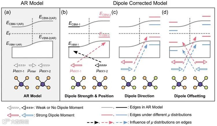 。研究团队发现偶极矩描述符可用于校正半导体能带排布中被安德森模型忽略的界面偶极相互作用。他们利用第一性原理密度泛函理论对这一现象进行了深入研究,并详细解释了其中的机理。