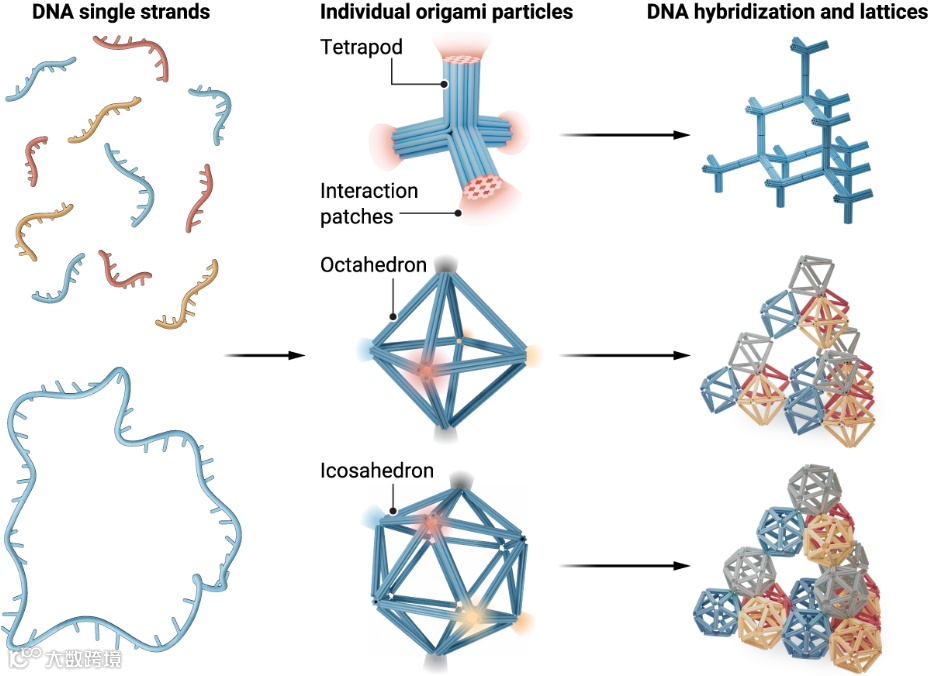 DNA纳米结构设计及晶格自组装。图片来源:Science