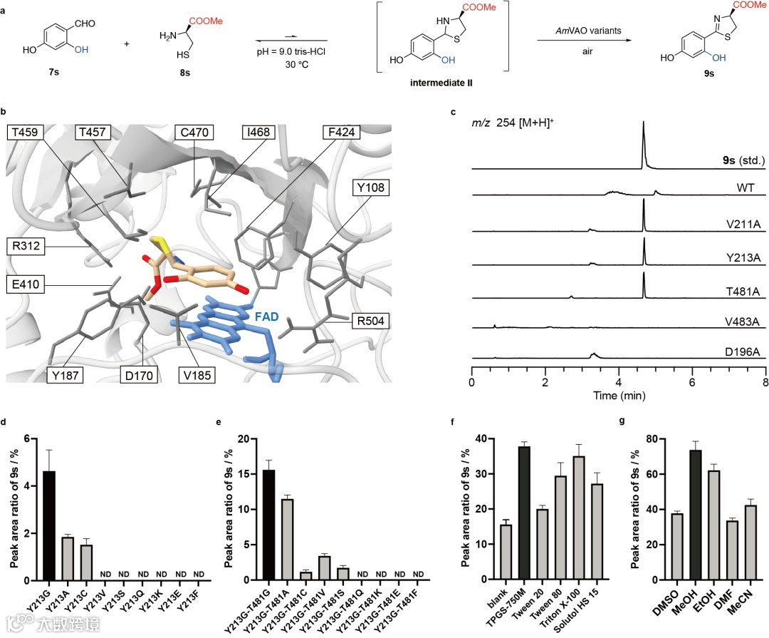 VAO-Y213G-T481G具有最好的催化活性。结合后续的表面活性剂和有机共溶剂筛选,作者最终以60%的分离产率合成出了化合物