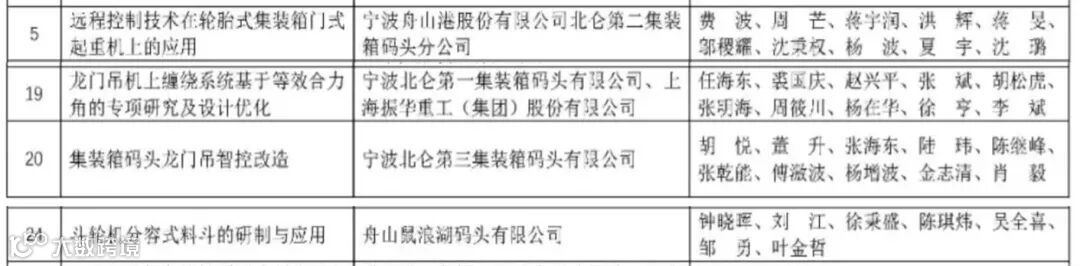 11月2日,2020年度中国港口协会科学技术奖评审结果揭晓,浙江省海港集团、宁波舟山港集团下属4家单位的4个项目获奖。其中,北二集司《远程控制技术在轮胎式集装箱门式起重机上的应用》、北一集司《龙门吊机上缠绕系统基于等效合力角的专项研究及设计优化》、北三集司《集装箱码头龙门吊智控改造》3个项目获中国港口协会科技进步奖二等奖,鼠浪湖公司《斗轮机分容式料斗的研制与应用》项目获中国港口协会科技进步奖三等奖。