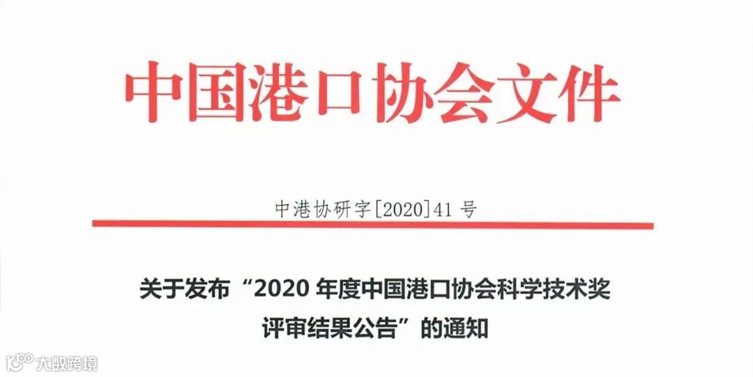 中国港口协会科学技术奖由国家科学技术部和国家奖励工作办公室共同批准设立。2020年度,共有全国港口企业、港航科研机构、高等院校申报的113个项目通过形式审查,经过初审、终审,最终产生中国港口协会科技进步奖一等奖9项(含1个创新团队)、二等奖24项、三等奖32项,中国港口协会技术发明奖二等奖1项、三等奖1项。