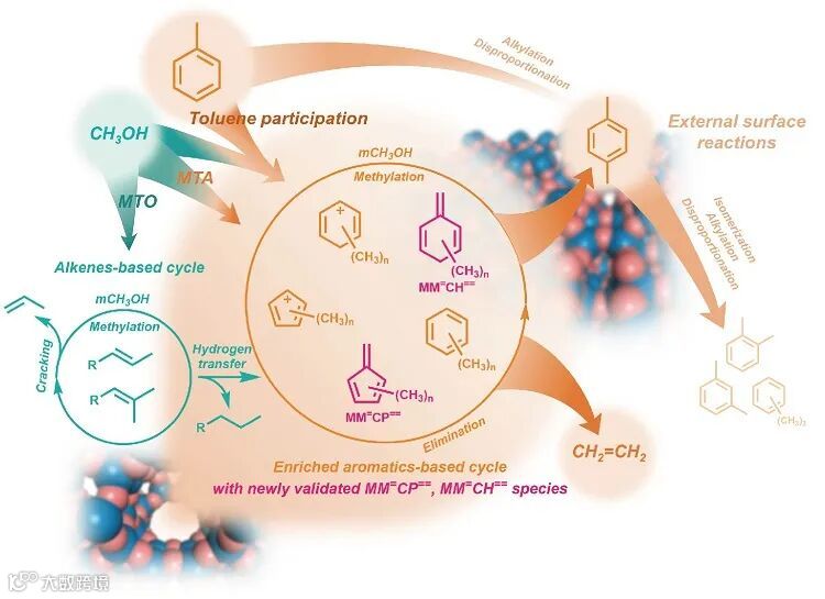 导读:中国科学院大连化学物理研究所刘中民院士团队魏迎旭研究员、于政锡研究员、韩晶峰副研究员在对甲醇制烯烃过程的深刻认识基础上,建立甲醇甲苯耦合反应体系并对该过程反应机理进行了深入研究。