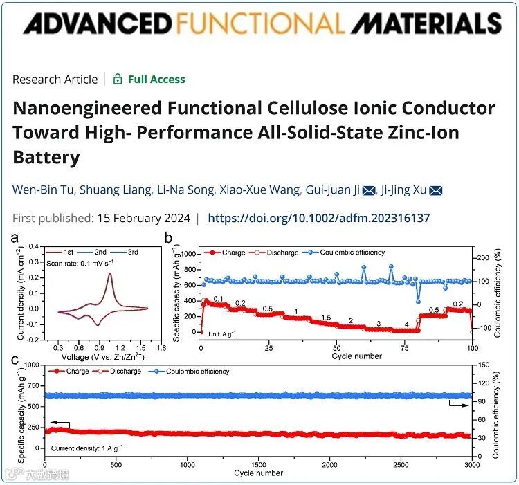 15. Adv. Funct. Mater.:纳米工程纤维素离子导体助力全固态锌离子电池