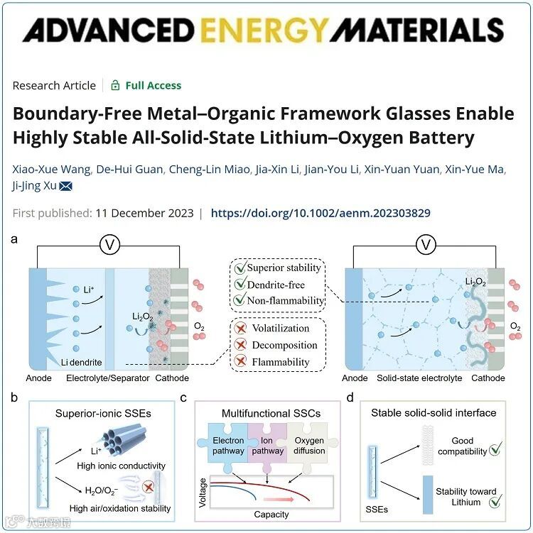 13. Adv. Energy Mater.:玻璃态MOF构筑高稳定全固态锂−氧气电池