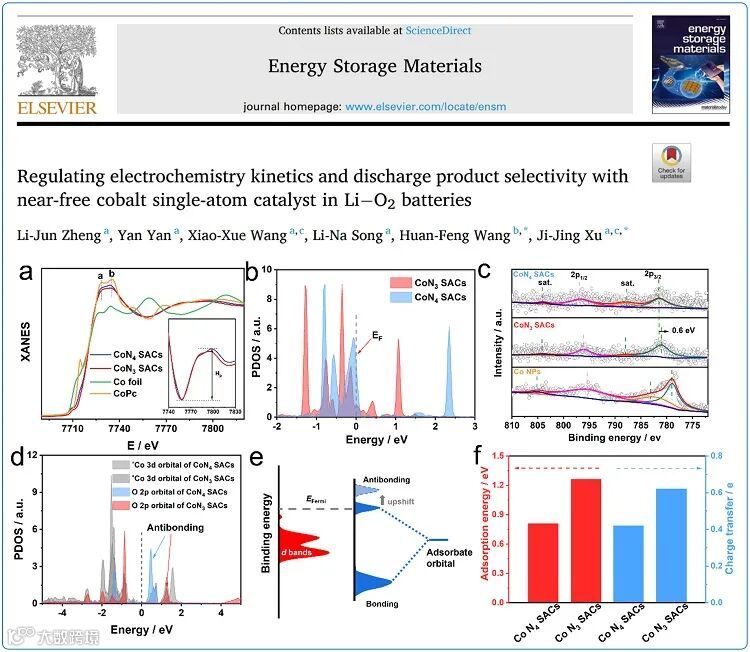 18. Energy Storage Mater.:调控锂−氧气电池反应动力学和产物选择性