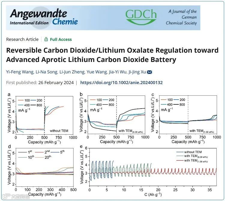 17. ACS Energy Lett.:基于可溶性草酸盐的高可逆锂−二氧化碳电池