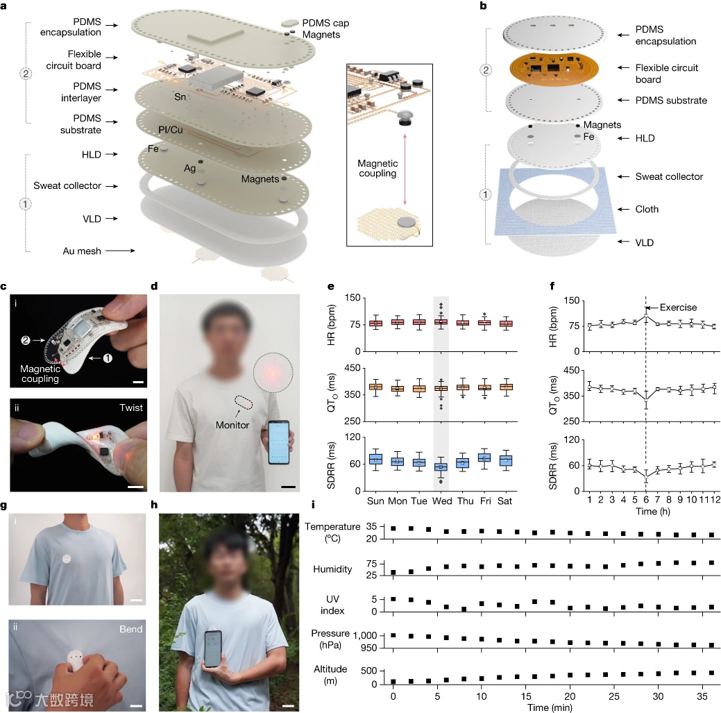 此外,3D LD结构具有可扩展性,可与更多复杂电路进行集成,例如,将ECG监测器和无线传输装置同时负载在3D LD上,就可以在手机上读取心电图信号,再加入温度、湿度和气压传感器,还可以实时监测环境参数。