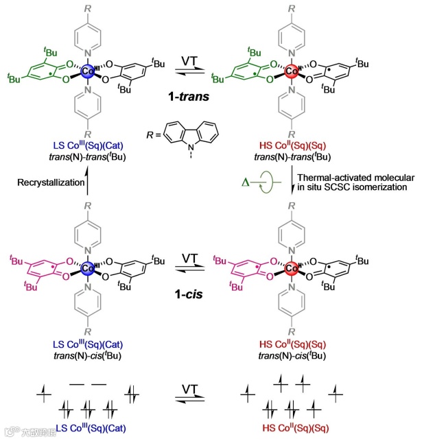 图3. VT转变和trans-to-cis异构化的机理说明。