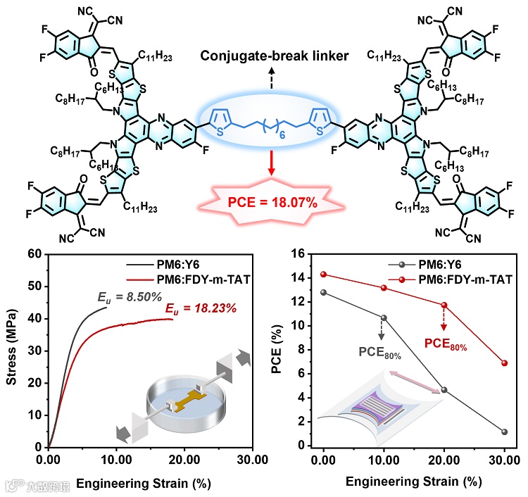 图1. 非共轭连接的齐聚物受体可用于实现高效可拉伸有机光伏电池