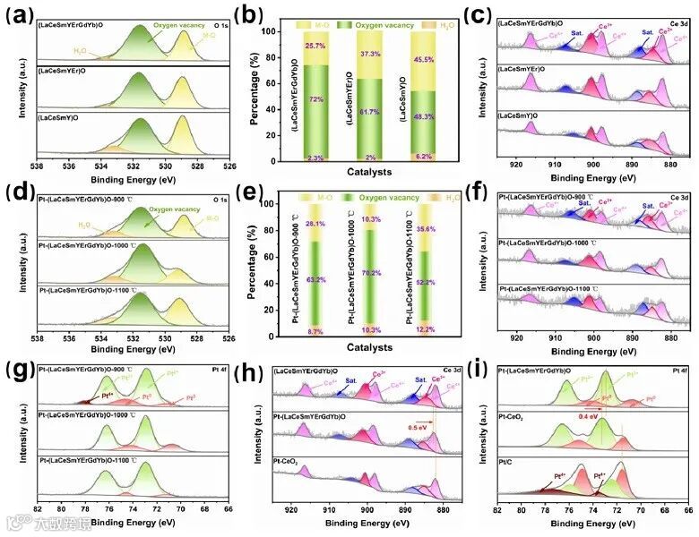 图3. XPS表征探索氧空位表征与不同稀土元素、与合成温度的关联性。