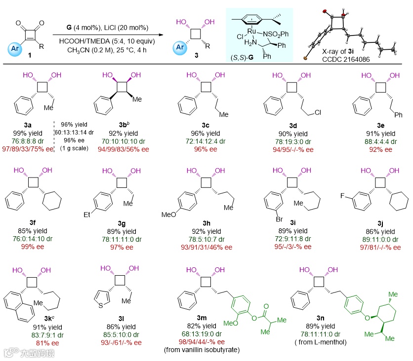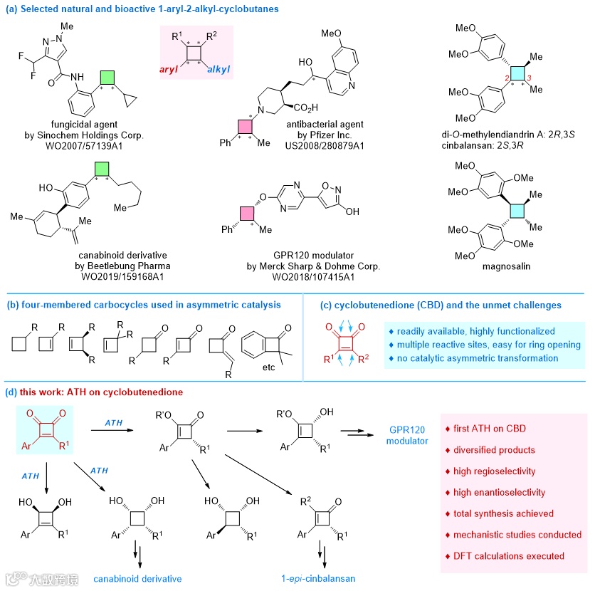 环丁烯二酮的高区域和立体选择性不对称转移氢化,可以一步获得三类手性四元环分子,并且产物可以进一步转化为更多类型的四元环和药物分子