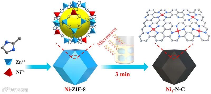 /KCl作为微波吸收介质,以Ni掺杂的沸石咪唑骨架的MOF(Ni-ZIF-8)为前体,在无惰性气体保护下,仅3分钟就获得了碳载单原子Ni催化剂(