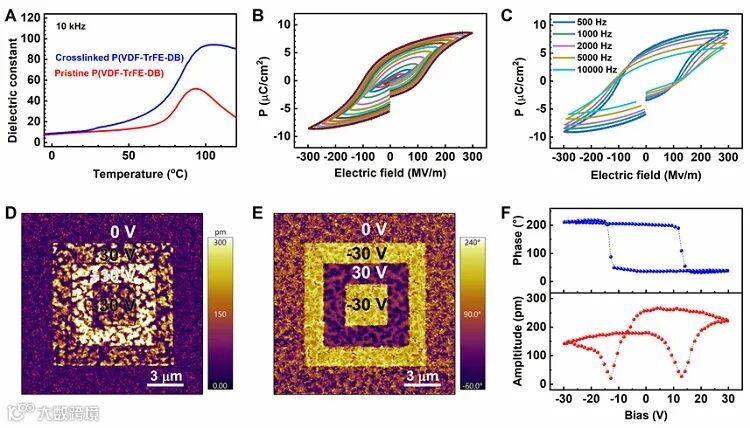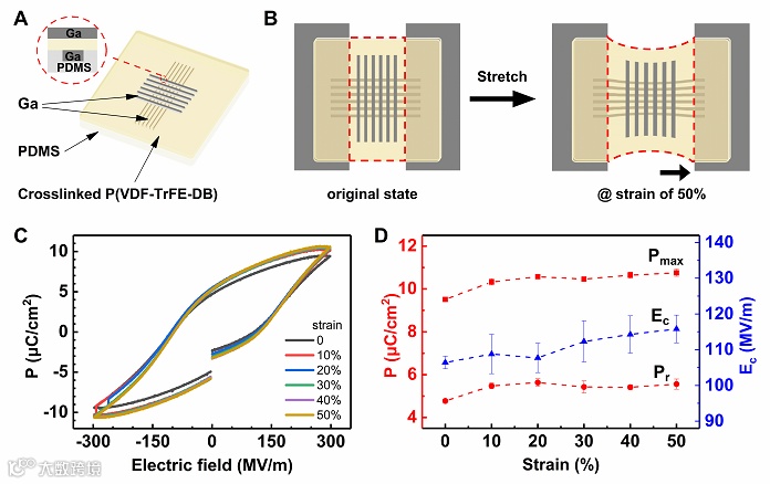 在前期通过精准“微交联”获得弹性P(VDF-TrFE) 55/45 mol%铁电聚合物的基础上(