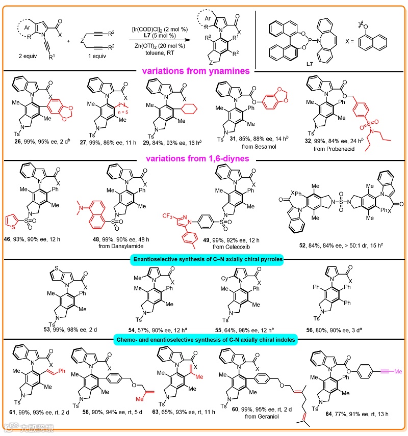 首例铱/锌共催化的化学和对映选择性[2+2+2]环加成反应构建C-N轴手性吲哚和吡咯化合物