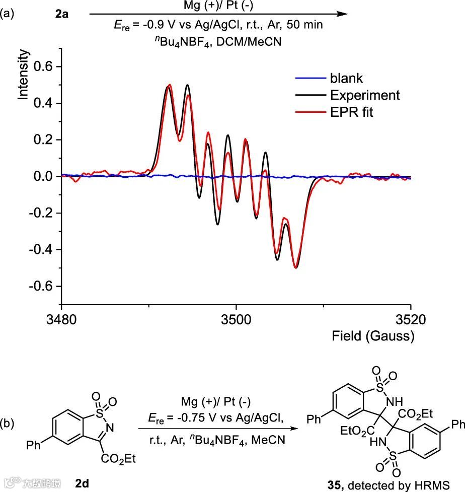 的直接电解,可以得到明显的自由基信号(图5a)。对磺酰亚胺