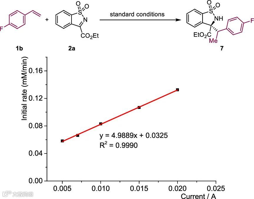 作者在研究平均反应速率对电流的依赖性时,发现模板反应中电流与反应速率呈现较强的线性正相关(图6),这表明电极上的电子转移是该反应中的速率决定步骤。