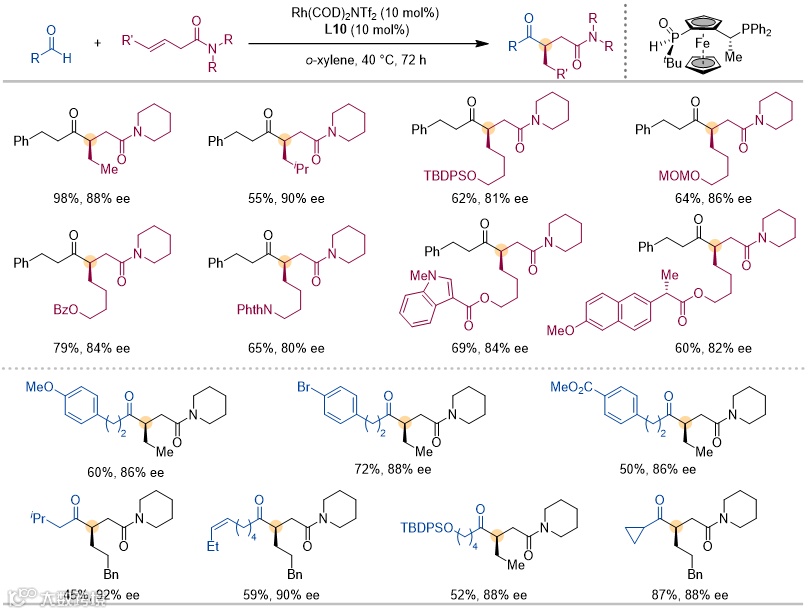 -不饱和酰胺和醛都能以较好的产率、单一的区域选择性和较好的ee值获得产物(图3)。