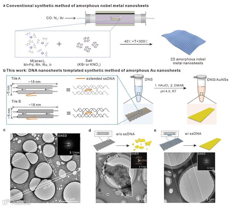 该工作不仅提出了一种新的DNA纳米结构金属化机制,丰富了基于DNA的纳米材料的发展,同时也为开发具有增强性能和多功能性的超薄二维非晶贵金属纳米材料提供了新的思路和方法。