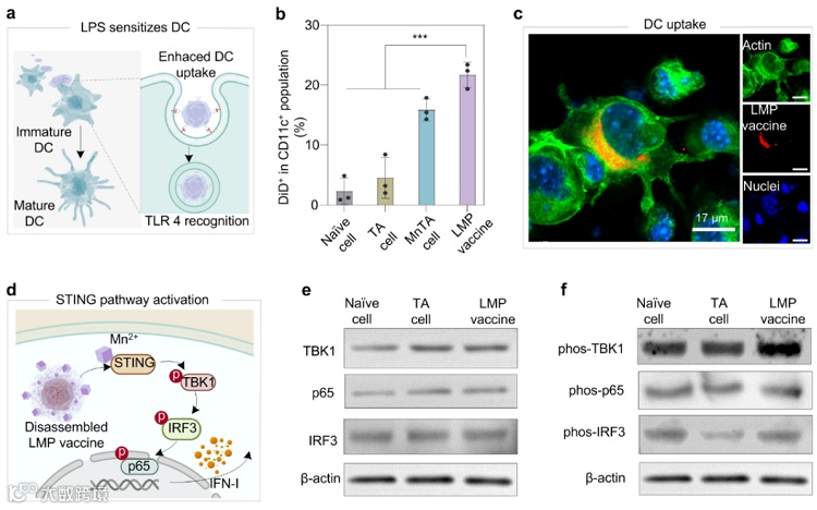 图3. 树突状细胞对LMP vaccine的摄取及STING通路的激活