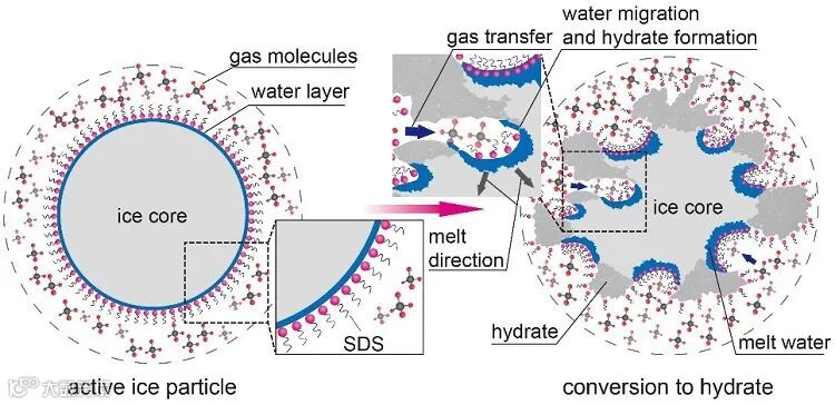 图1. 活性冰中水合物快速生成机理
