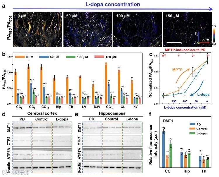 可以实现微米级分辨率,还可以在帕金森病(PD)模型鼠发展和药物干预的过程中,精准可视化脑部不同区域