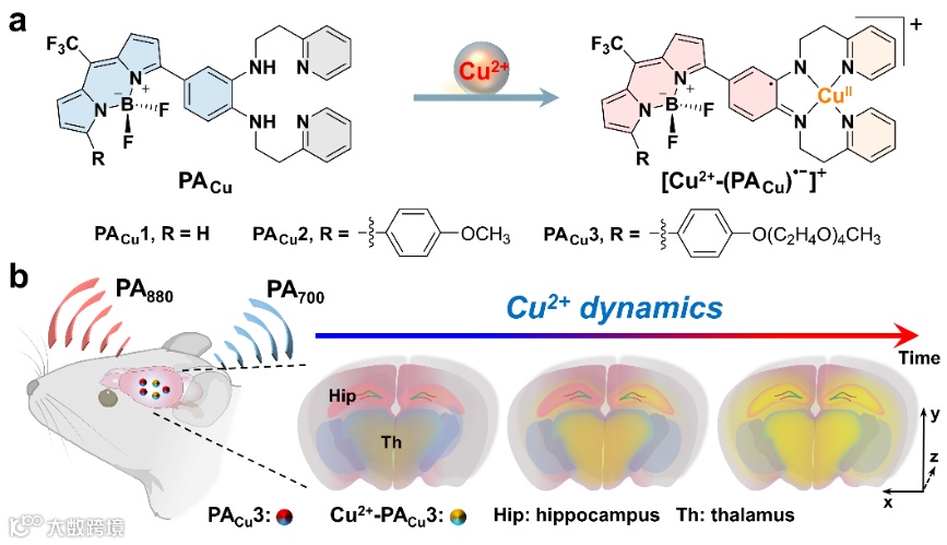 导读:南京林业大学刘志鹏教授团队与南京大学郭子建院士团队展开合作,设计开发了一种可用于活体小鼠脑部Cu2+高时空分辨成像的小分子光声探针
