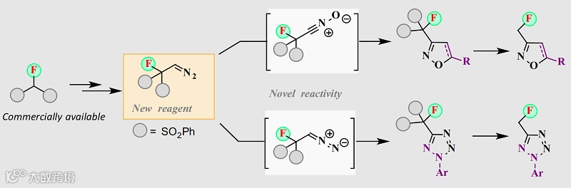 图1. 单氟重氮乙烷试剂的设计合成与环加成反应。图片来源: