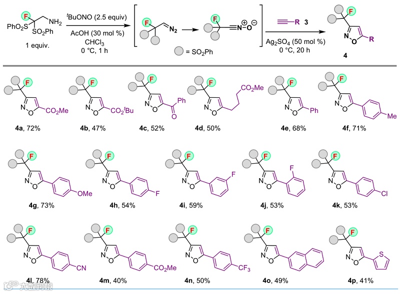 图4. 单氟重氮乙烷与炔烃的[3+2]环加成反应。图片来源: