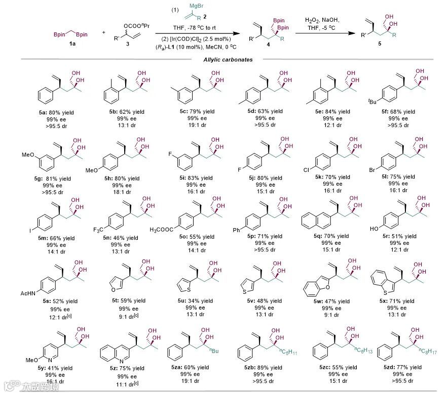 图2. 烯丙基碳酸酯和乙烯基格氏试剂普适性的考察