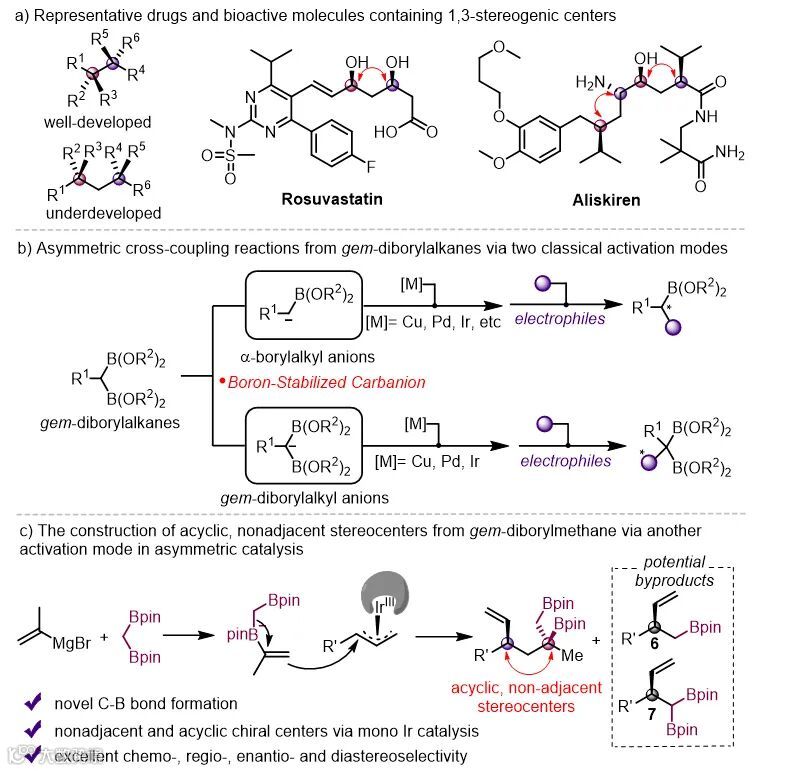 上海科技大学高得伟课题组Angew:基于偕二硼酸酯催化反应模式创新,构建非环状、1,3-立体中心的手性1,2-双硼酸酯
