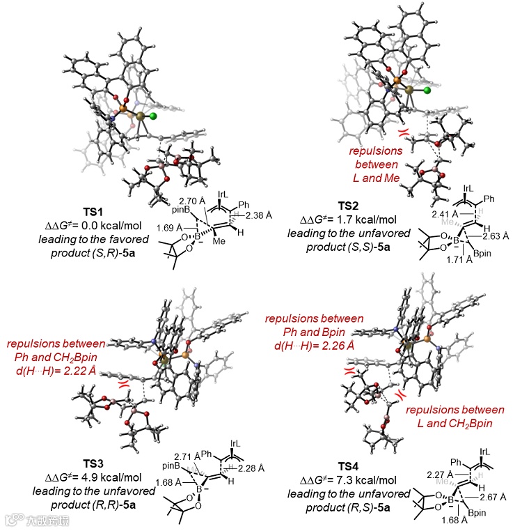 图5. DFT计算揭示对映和非对映选择性的起源问题