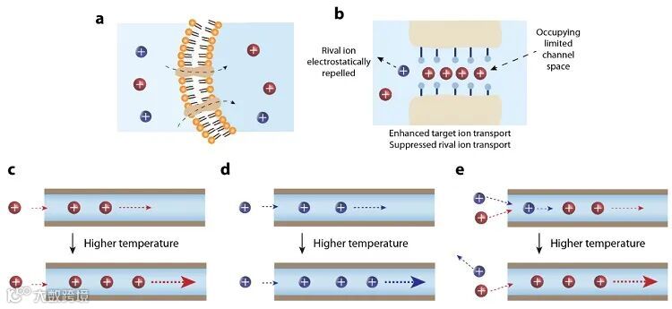 图3. MXene层状膜埃流通道内的仿生光促多离子相互作用机制。图片来源:ACS Nano