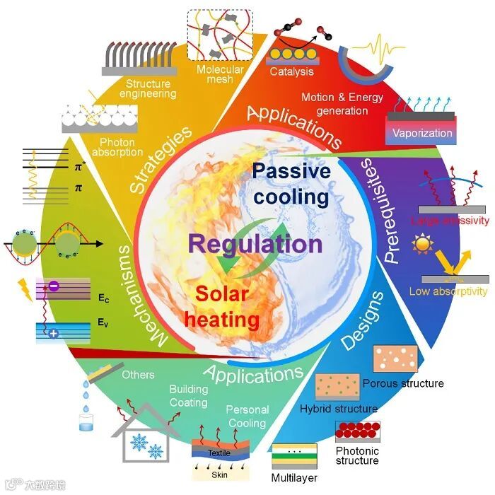 近期,南京工业大学化工学院、材料化学工程国家重点实验室陈苏教授、朱亮亮教授团队在Chemical Society Reviews 期刊上发表封面综述论文,该综述全面概述光热调控策略,并讨论该领域的最新进展,重点包括:(1)光热调控的基本原理,包括太阳能加热转换和辐射冷却机理、过程及其评价方法;(2)高效光热调节的基本标准;(3)用于高效太阳能加热转换和被动冷却的新兴光热调节材料和典型结构;(4)太阳能加热/制冷一体化系统的设计策略;(5)光热调控在清洁能源和环境领域的应用进展。最后,作者讨论了光调制、光热调控材料在结构设计、工艺优化和光热基础设施建设等方面的面临的挑战和未来发展趋势。