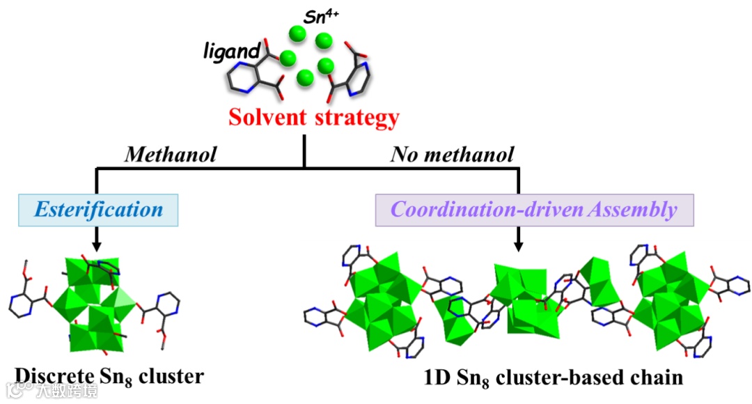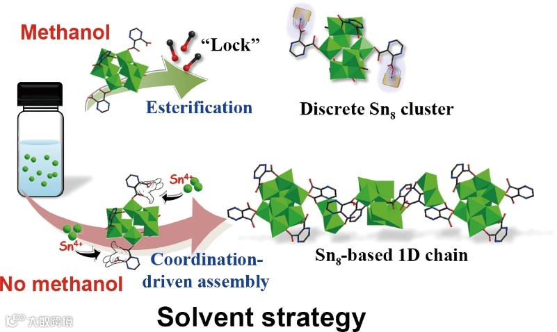 作者通过溶剂中甲醇含量调控反应路径,调节锡-氧簇表面可用的配位活性位点,从而分级组装形成分立的锡-氧簇及其拓展结构。